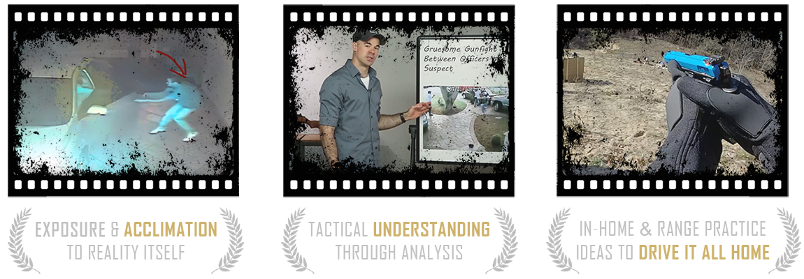 Most importantly of all, these gunfight videos are curated per volume to highlight and teach on important aspects of combat dynamics, so the viewer can learn the most important lessons related to armed-defense survival and effectiveness in an easy-to-digest, chronological order.