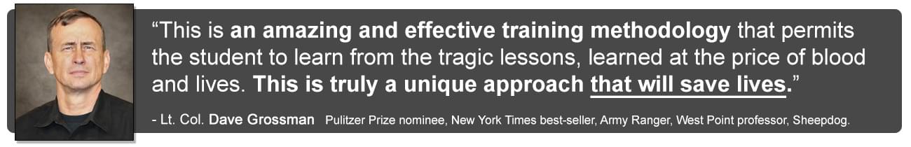 3 SECONDS FROM NOW training series, the viewer is exposed to a series of real-life self-defense gunfights caught on tape, and these attacks are slowed down, paused, explained, and often re-created inside the Sim 'force on force' arena, so that the viewer can clearly see what went wrong (or right) and why.